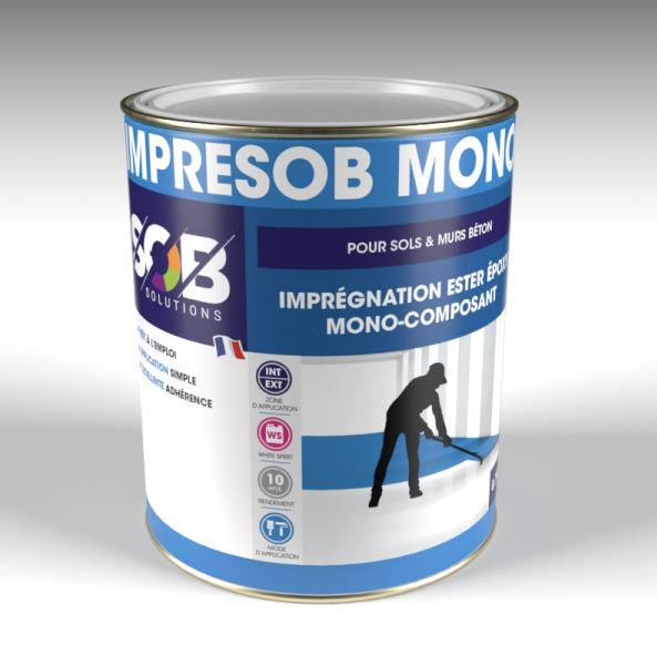 L'IMPRESOB MONO est une imprégnation ester époxy monocomposante en phase solvant, conçue pour assurer une parfaite liaison entre les chapes en béton et les peintures de sol monocomposantes, qu'elles soient en phase aqueuse (type AQUASOB) ou en phase solvant (type ALKYSOB).